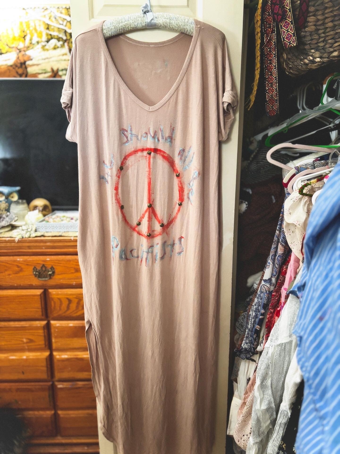 Handpainted t shirt dress: taupe- one size fots most m/l/xl/xxl/1x/2x/3x