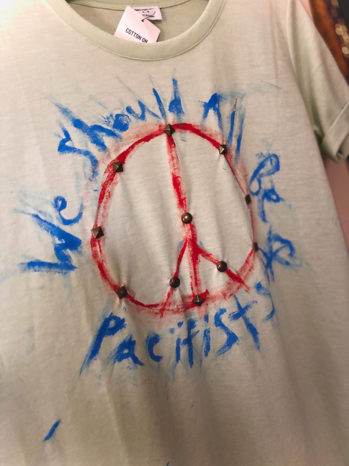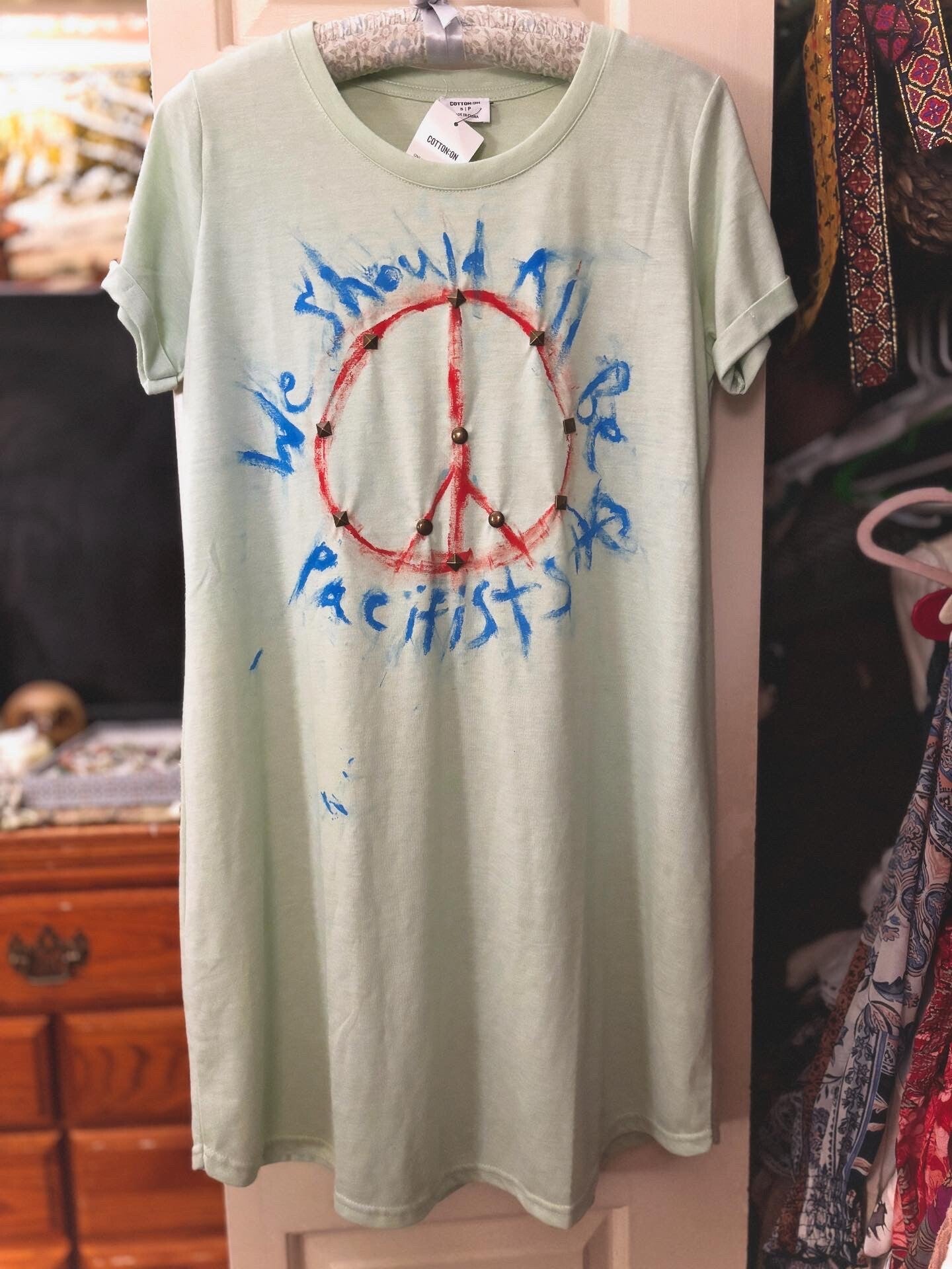 Handpainted peace NWT Cotton on t shirt dress: green- small